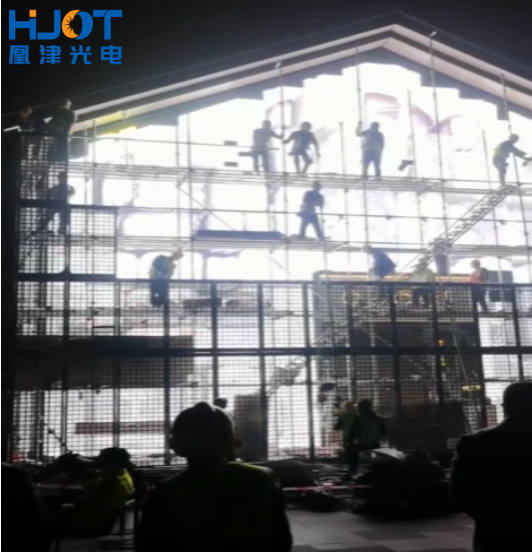 能在两年间始终保持卓越的显示效果,背后是凰津光电HJOT深厚的技术沉淀与匠心精神。在产品定制阶段,凰津光电的专业团队针建筑物外形多角度不规则等要求,精心选用车洗铝底壳模组套件和斜边套件、高亮LED灯珠和先进的驱动芯片。这些核心部件不仅具备超高亮度,高散热,确保在强光直射下画面依然清晰可见,还拥有出色的稳定性和耐用性,可适应高温、潮湿等各种恶劣天气,为大屏的长期稳定运行奠定了坚实基础。